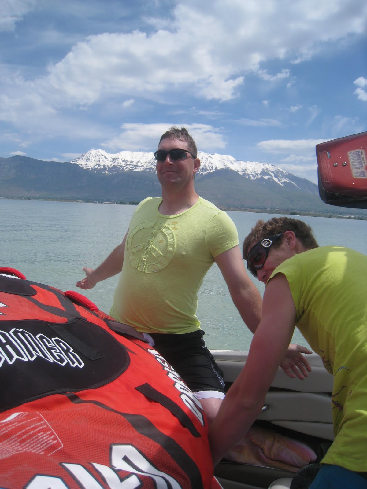 So Luke was wearing girl sunglasses and a neon green shirt. I happened to be wearing the same color shirt (only a lot more faded, and had hearts on it) over my swimsuit. And just because Ted loves to tease and provoke, he had me take off my shirt and show everyone just how "sexy" he was. The sight alone was enough to have everyone rolling in laughter. But once he added the sweet lisp and hand motions we couldn't catch our breathe we were laughing so hard. Ted left the shirt on for awhile and did stuff that would have us laughing again. My favorite was when he threw out the rope!!! It was a classic girl throw! And then he leaned over the boat and threw the rope out little by little while making grunts like he was trying his hardest!!!